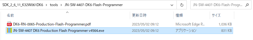 ダウンロードした SDK_2_6_11_K32W061DK6\tools\JN-SW-4407-DK6-Flash-Programmer にインストーラーとドキュメントが用意されています。