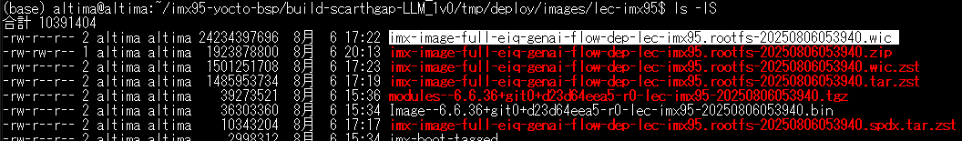 <build_dir>/tmp/deploy/image/lec-imx95/ ディレクトリに imx-image-full-eiq-genai-flow-dep-lec-imx95*.wic というイメージが生成されます。