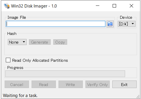 今回 Windows 10 PC で Win32 Disk Imager というツールを使用し MicroSDカードへの書き込みを行います。